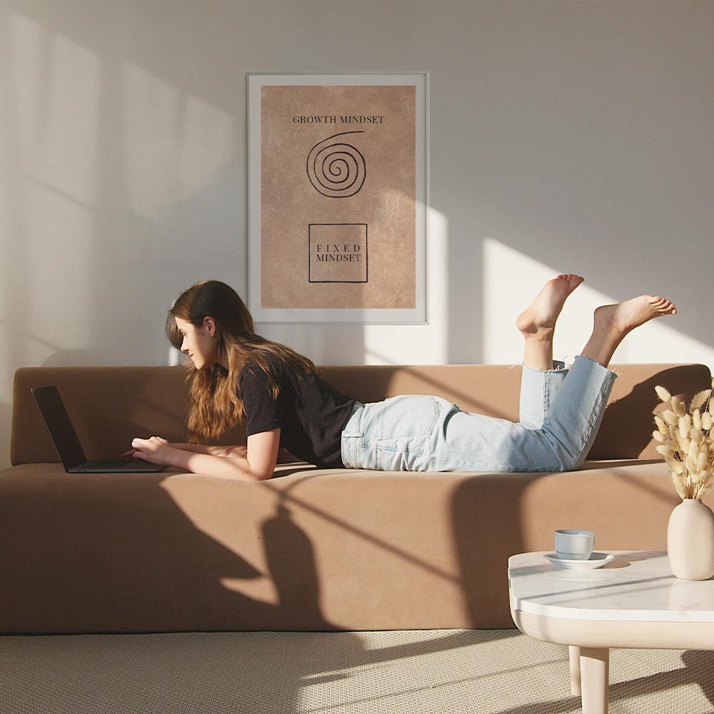 🎨 Exklusives Design: Das Growth Mindset Poster in beige entsteht in einem kreativen Prozess und gibt es nur bei Noenya.